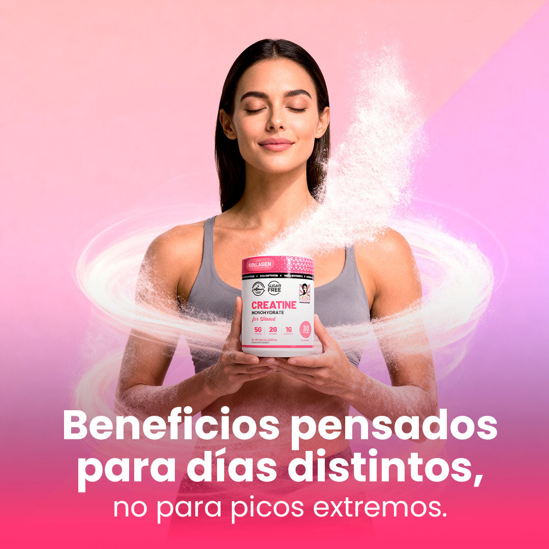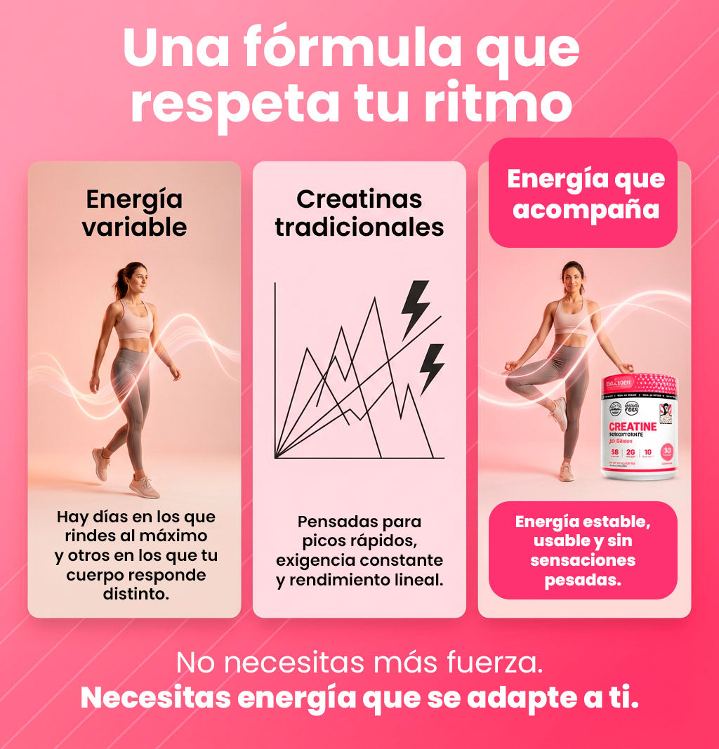 Esta fórmula está pensada para acompañar tu ritmo real: entrenes fuerte o más suave. No busca picos agresivos, sino energía estable, mejor absorción y una experiencia más cómoda para el uso diario, algo que las creatinas genéricas no consideran.
