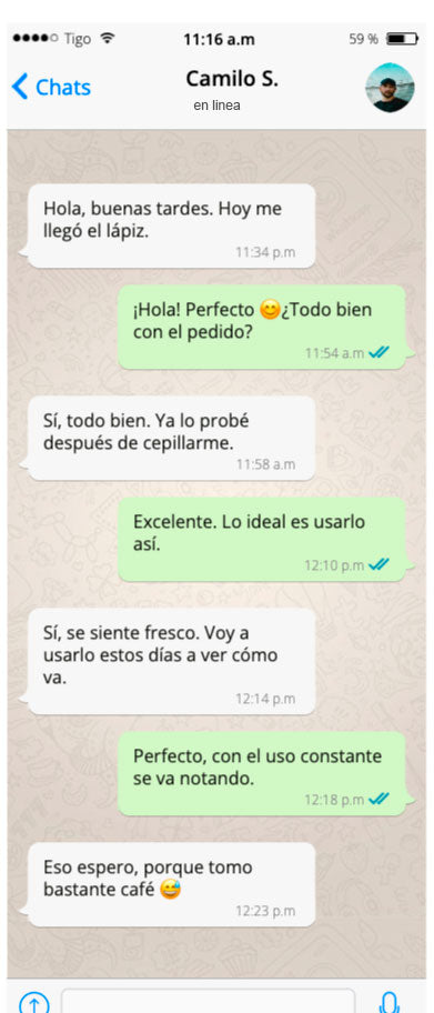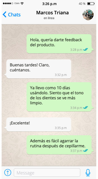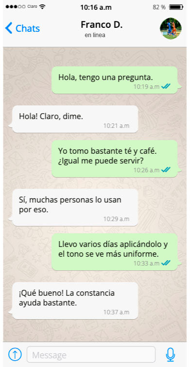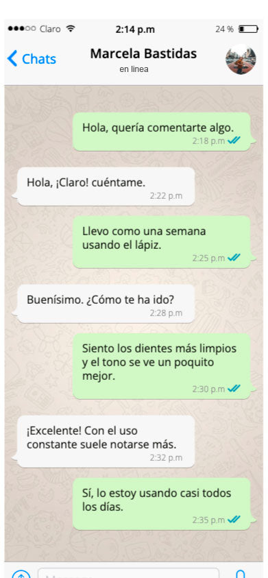 El tiempo puede variar según cada persona y la constancia de uso. Muchas personas comienzan a notar que el tono de sus dientes se ve más limpio y uniforme después de aproximadamente 7 a 14 días de uso constante, y la mejora puede hacerse más visible al seguir utilizándolo de forma regular.