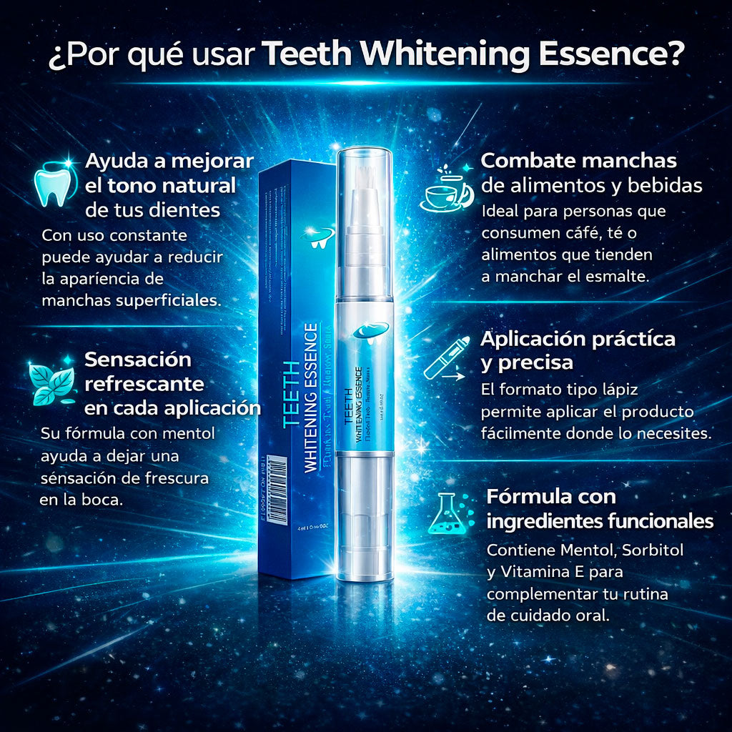 Formulado con ingredientes como mentol, vitamina E, sorbitol y peróxido de hidrógeno. Diseñado para ayudar a mejorar gradualmente el tono de los dientes mientras aporta una sensación de frescura.