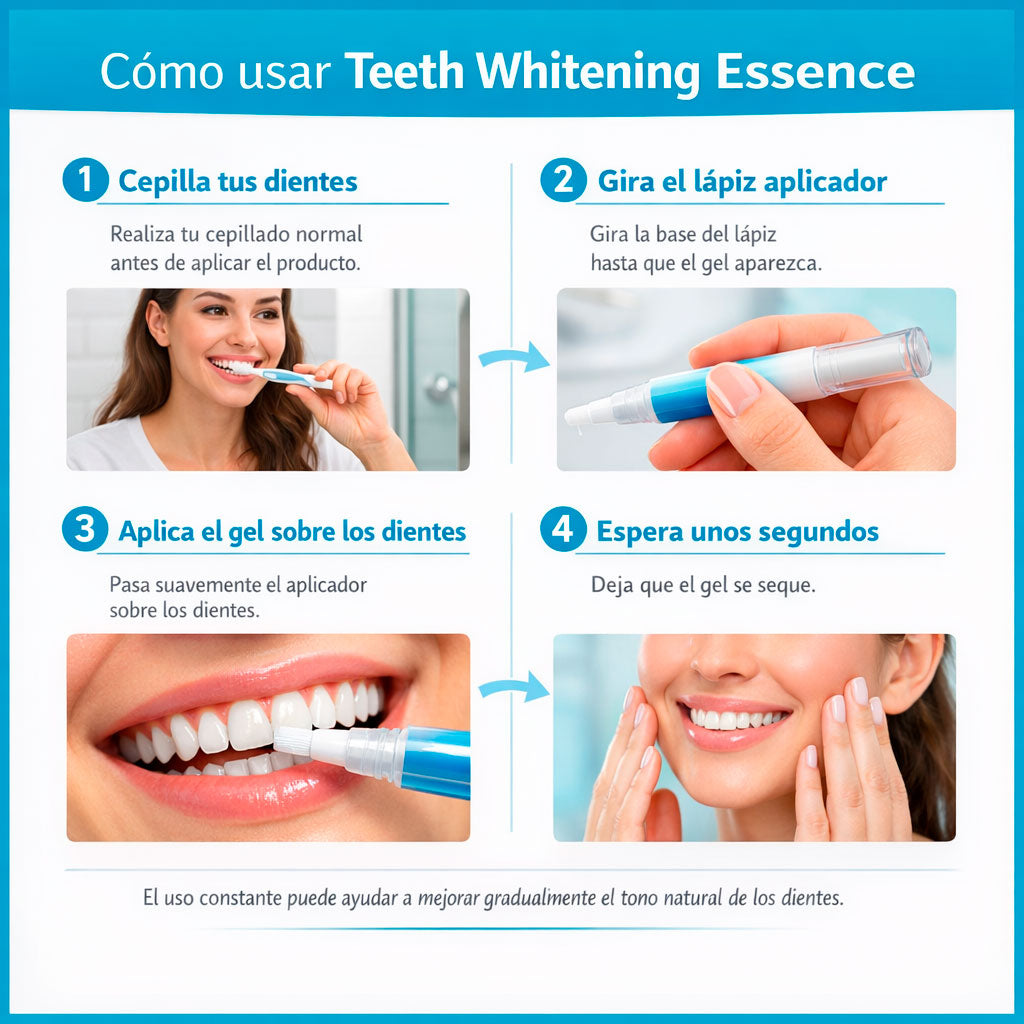 El uso es muy sencillo. Primero cepilla tus dientes como de costumbre. Luego aplica una pequeña cantidad del gel sobre la superficie de los dientes usando el aplicador tipo lápiz. Déjalo actuar unos minutos antes de enjuagar o comer.